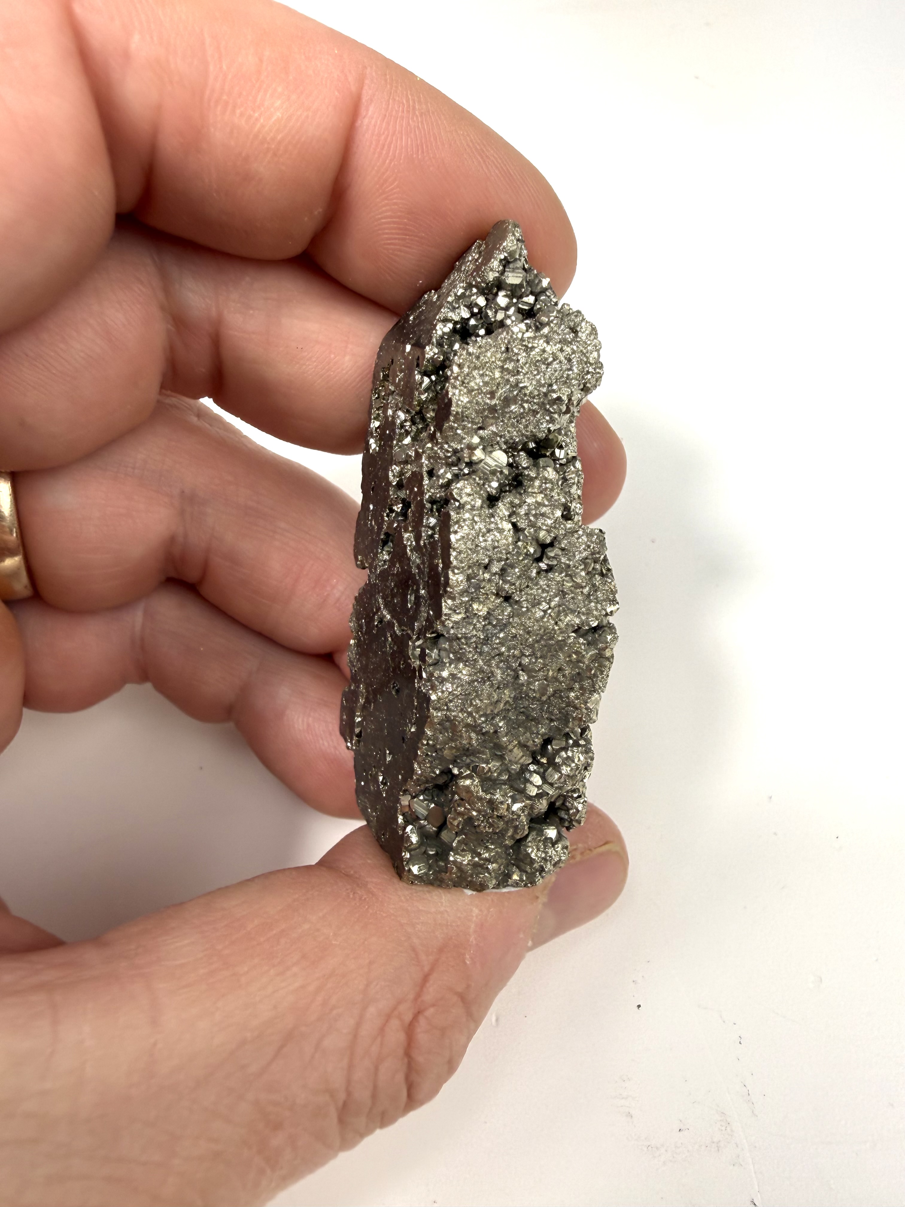 Pyrit har fået sit navn fra det græske ord for guld, stenen er også kendt som snyde guld. Pyrit er en fantastisk sten, hvis du står over for udfordringer der kan virke uoverskuelige, den giver dig selvtillid og styrke til at klare det på egen hånd. Pyrit giver jordforbindelse og bringer harmoni. Pyrit er også kendt for at bringe velstand og overflod.