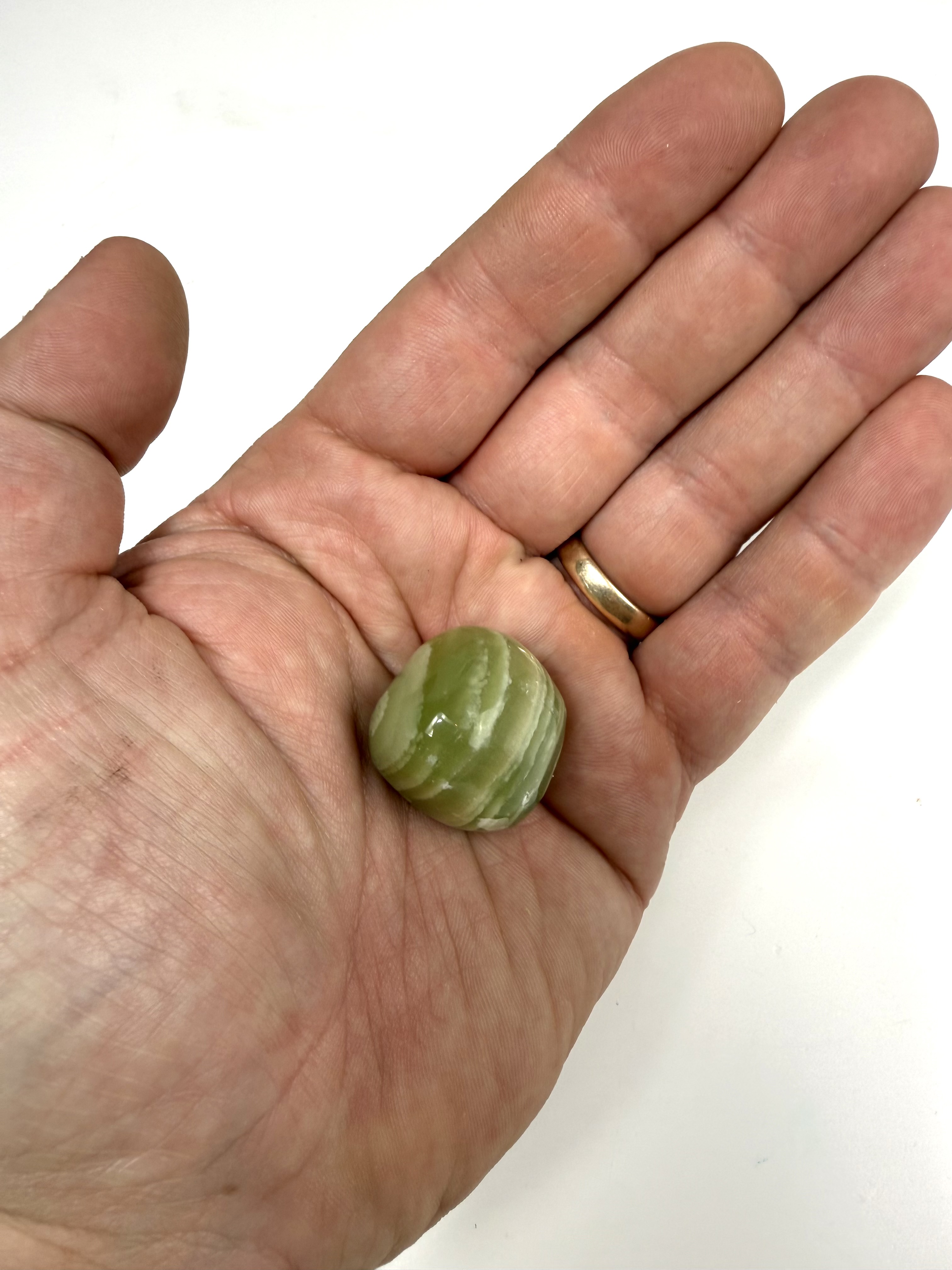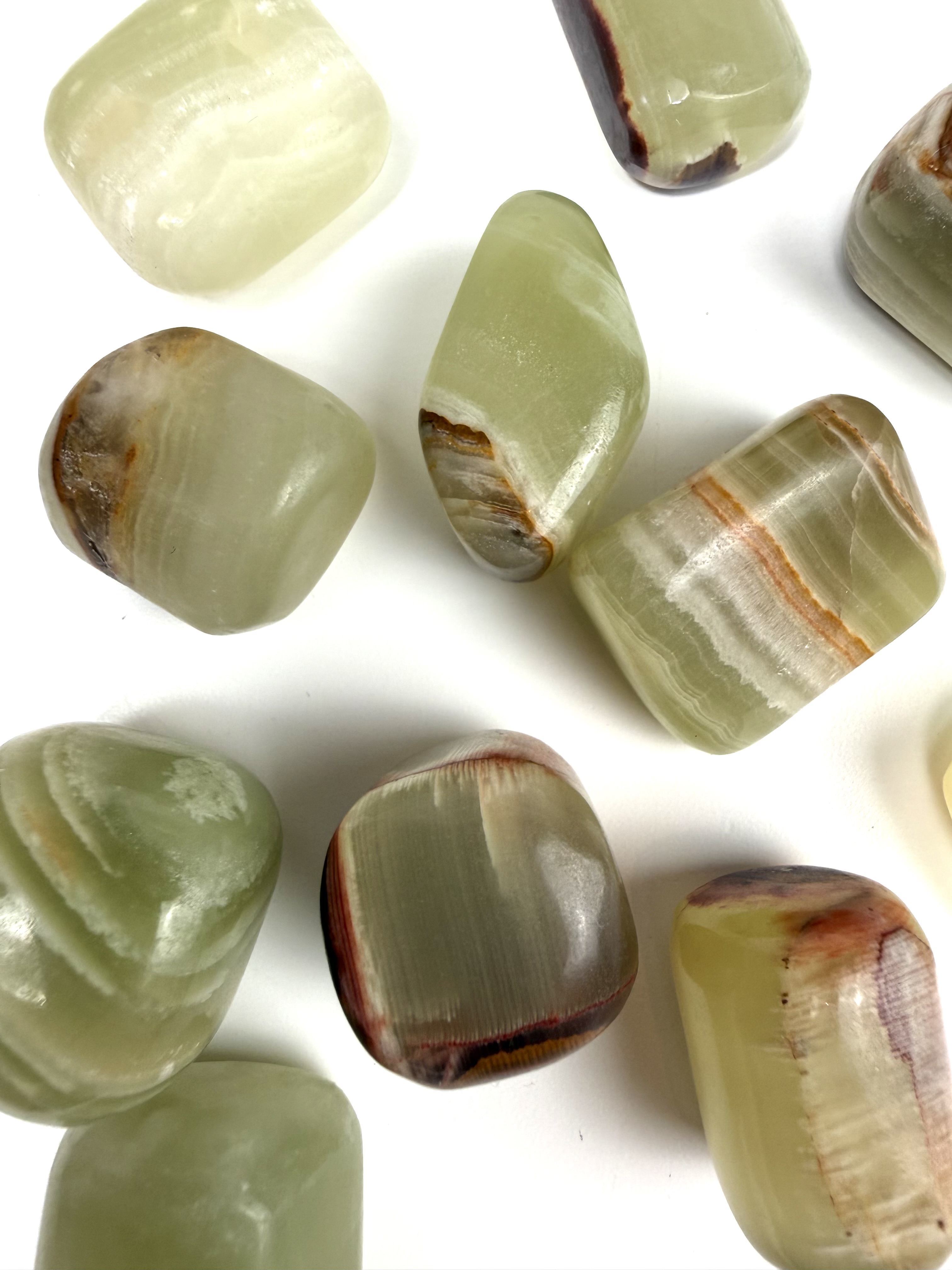 Grøn Onyx fremmer livsmod og giver styrke. Grøn Onyx er kendt for at styrke hukommelsen og hjælper dig med at huske miner og din fortid. Grøn Onyx har også en afslappende effekt, og er fantastisk mod stress og bekymringer. Grøn Onyx giver dig mentalt overskud og hjælper dig til at overkomme vanskeligheder. Grøn Onyx er stærkt forbundet med vores hjerte Chakra, og giver derfor også en indre ro i hjertet, og tiltrækker kærlighed og omsorg.