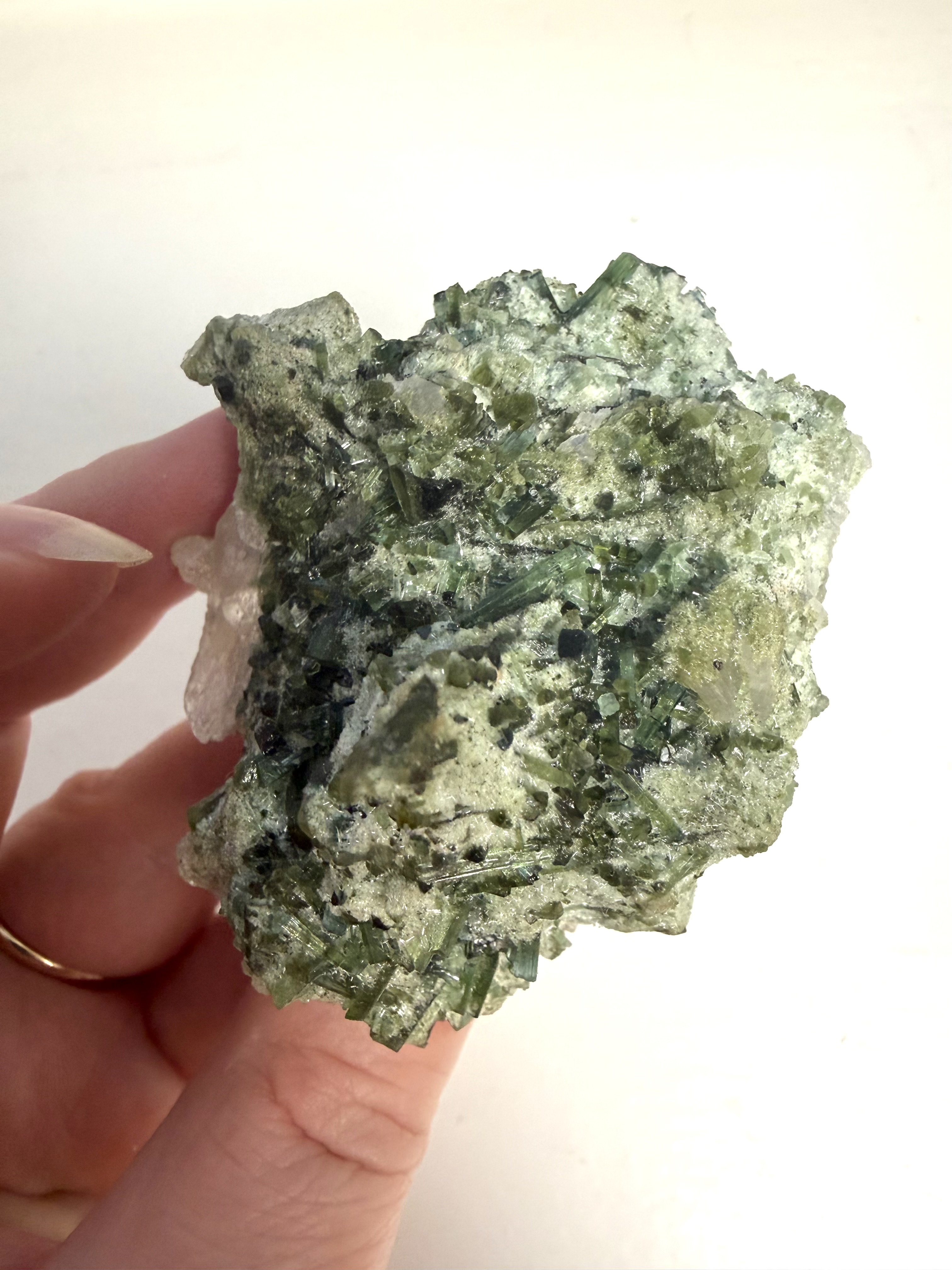 Grøn turmail i kvarts forbindes med livskraft og vitalitet. Grøn turmail i kvarts opleves som opbyggende og kan støtte kroppens naturlige balance, når du har brug for fornyet energi og stabilitet.
