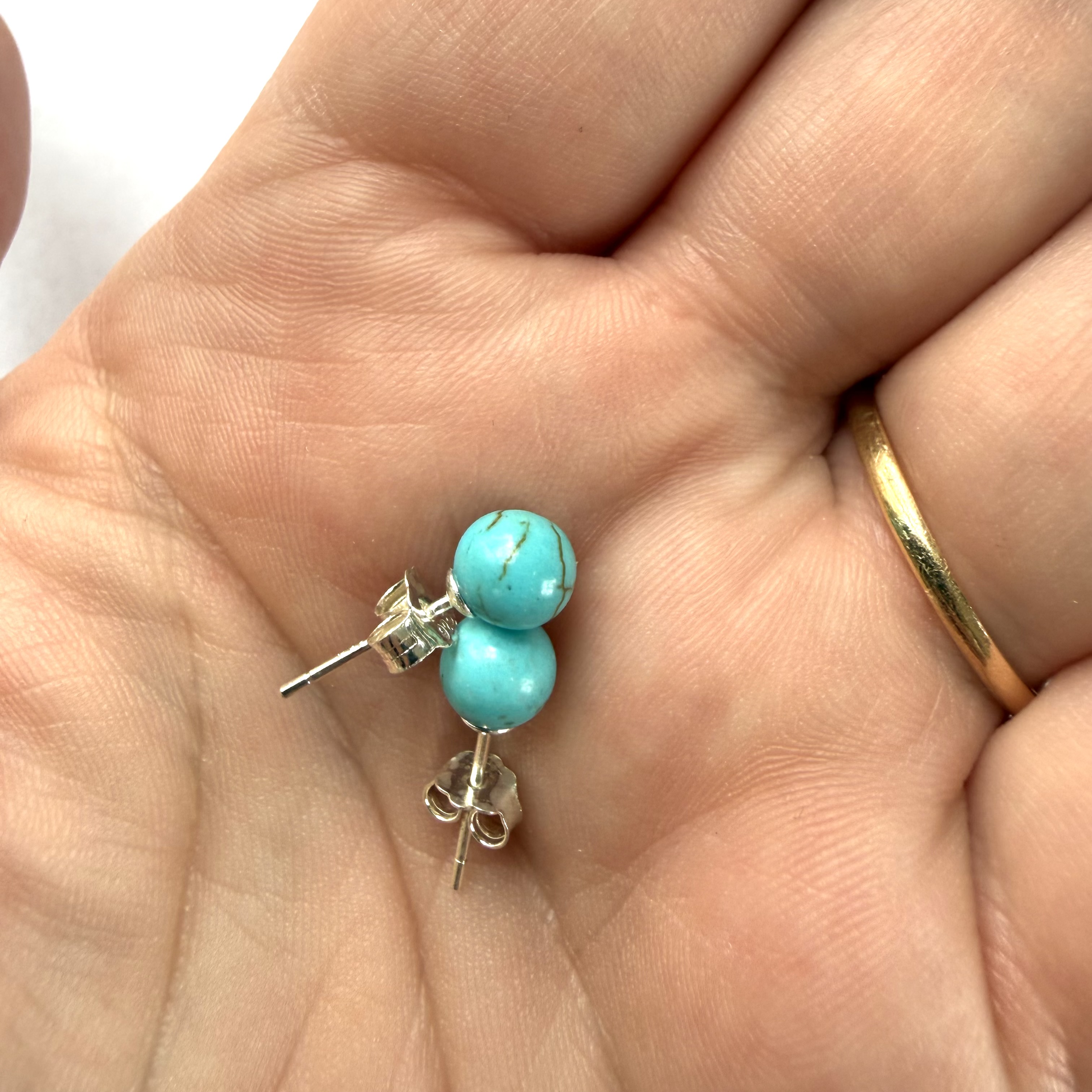 Blå Howlit ørestikker i sølv