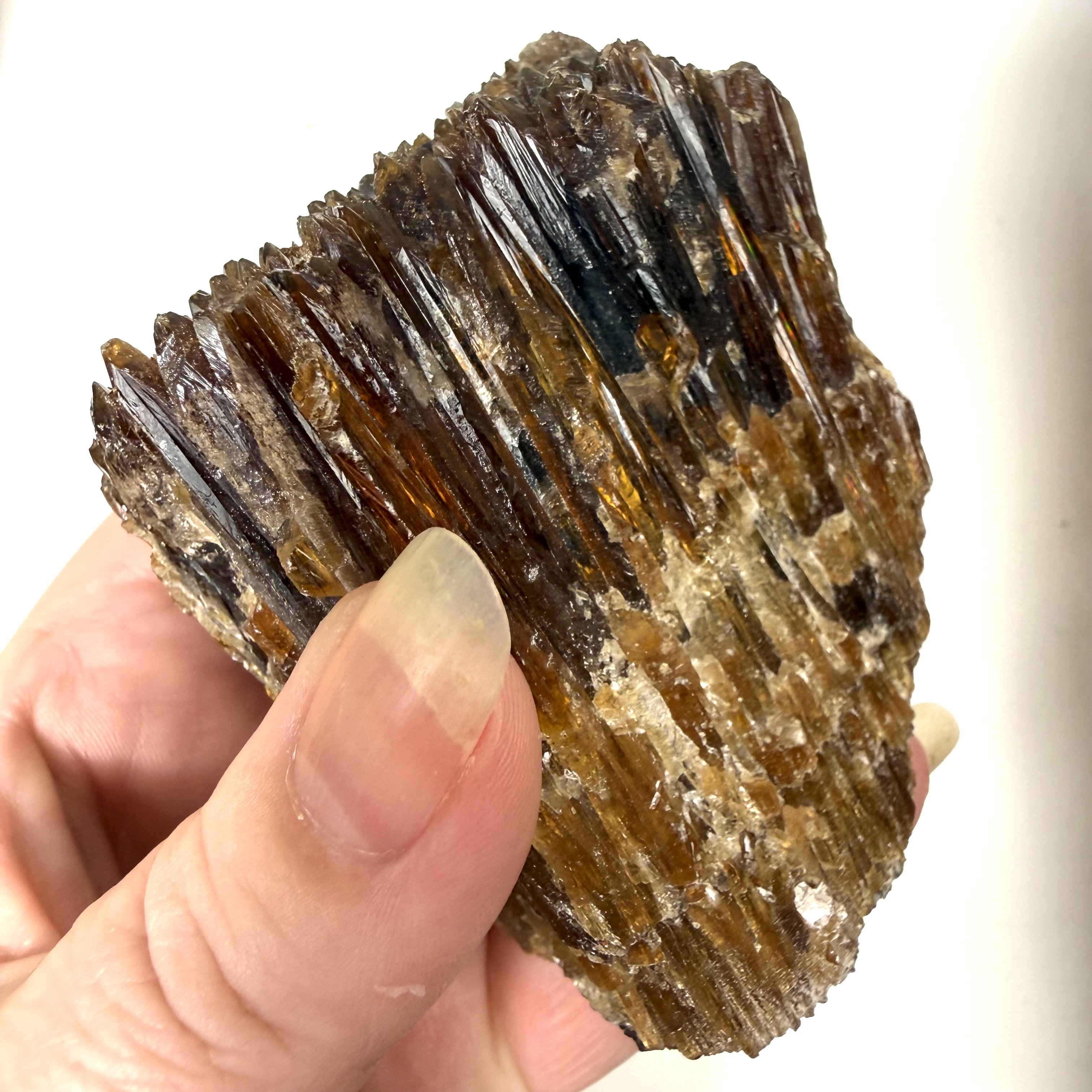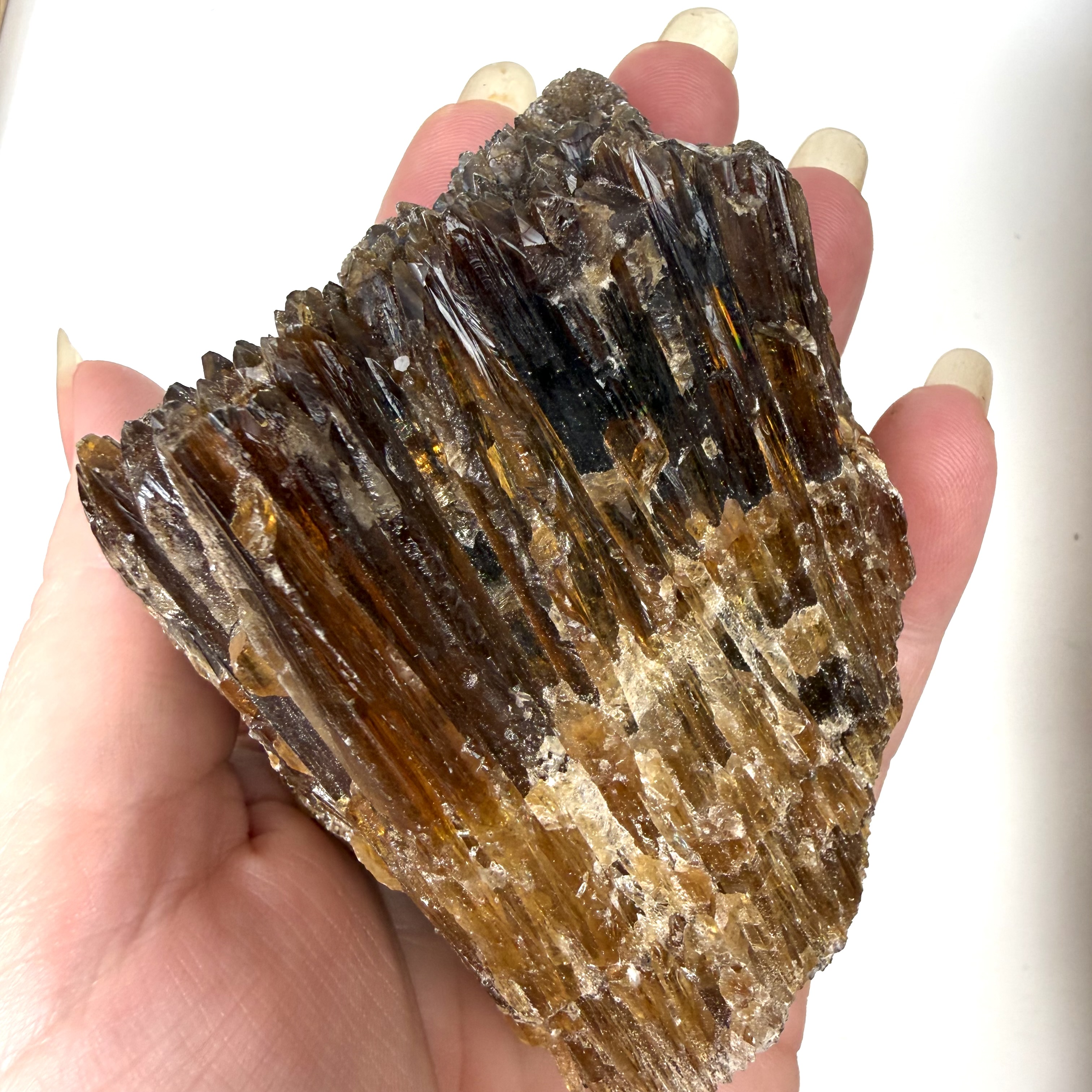 Rens: Rens brun aragonit med røgelse, lyd eller ved at lade den ligge på en selenit. Undgå vand, da aragonit er en porøs og skrøbelig krystal.