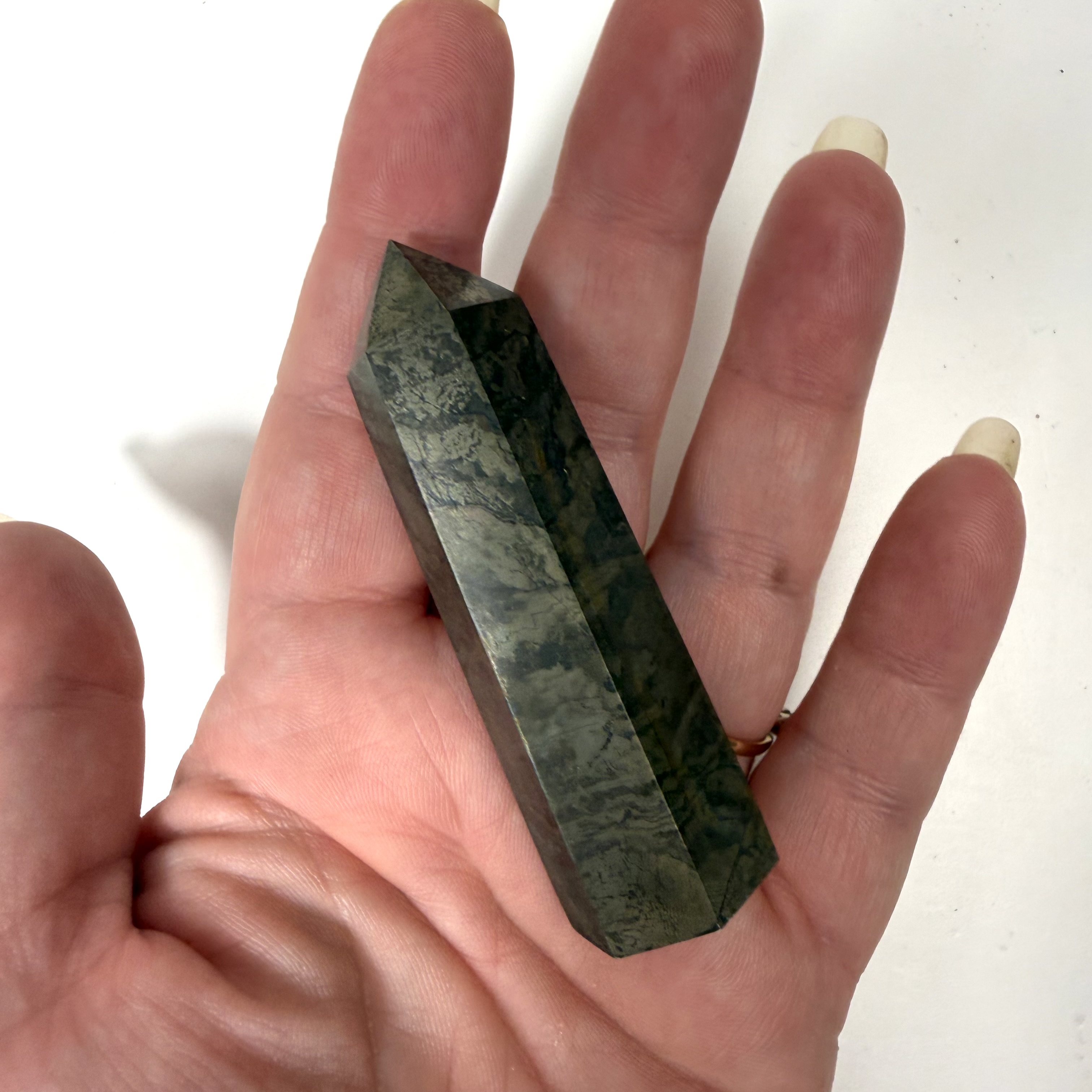 Pyrit har fået sit navn fra det græske ord for guld, stenen er også kendt som snyde guld. Pyrit er en fantastisk sten, hvis du står over for udfordringer der kan virke uoverskuelige, den giver dig selvtillid og styrke til at klare det på egen hånd. Pyrit giver jordforbindelse og bringer harmoni. Pyrit er også kendt for at bringe velstand og overflod.
