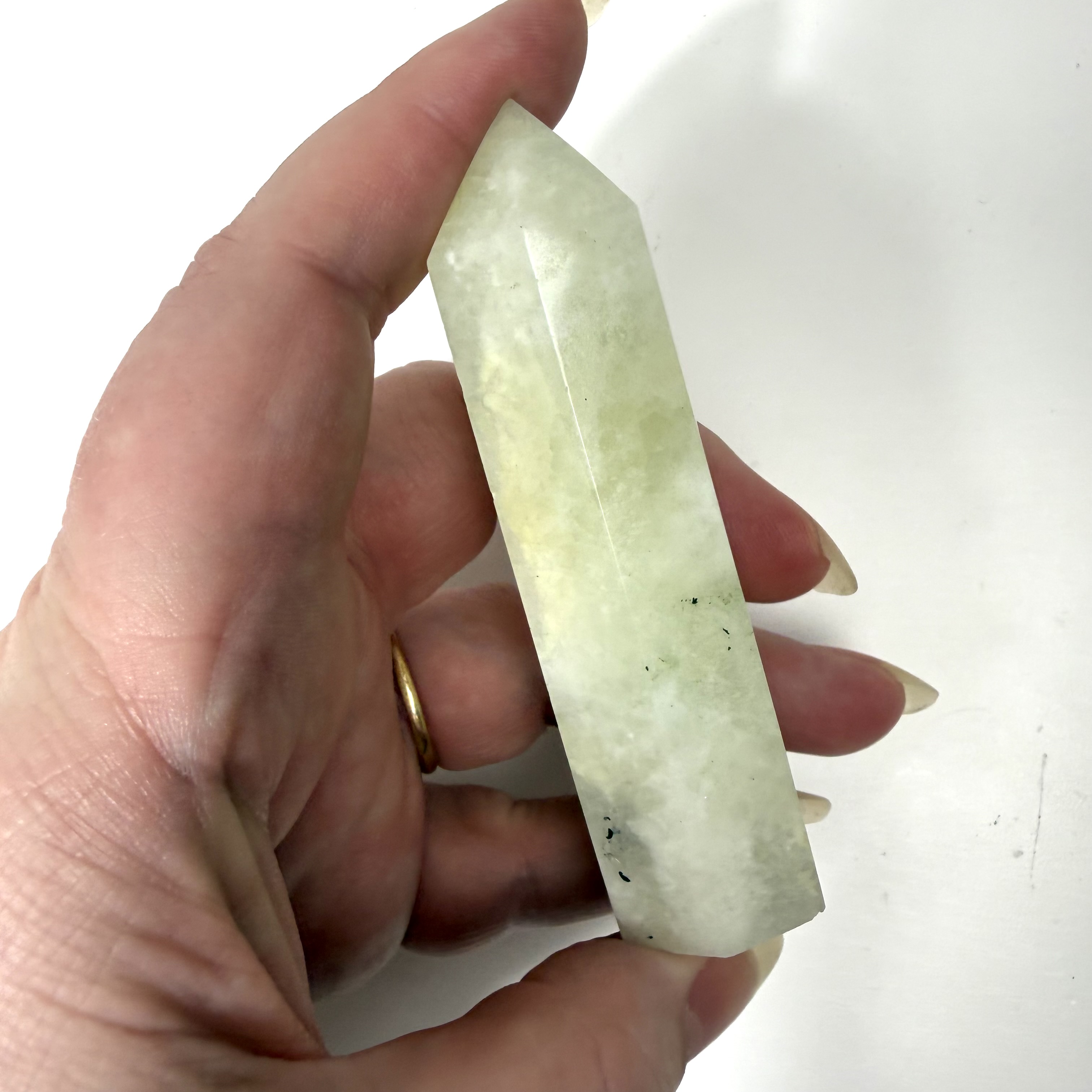 Grøn Onyx fremmer livsmod og giver styrke. Grøn Onyx er kendt for at styrke hukommelsen og hjælper dig med at huske miner og din fortid. Grøn Onyx har også en afslappende effekt, og er fantastisk mod stress og bekymringer. Grøn Onyx giver dig mentalt overskud og hjælper dig til at overkomme vanskeligheder. Grøn Onyx er stærkt forbundet med vores hjerte Chakra, og giver derfor også en indre ro i hjertet, og tiltrækker kærlighed og omsorg.