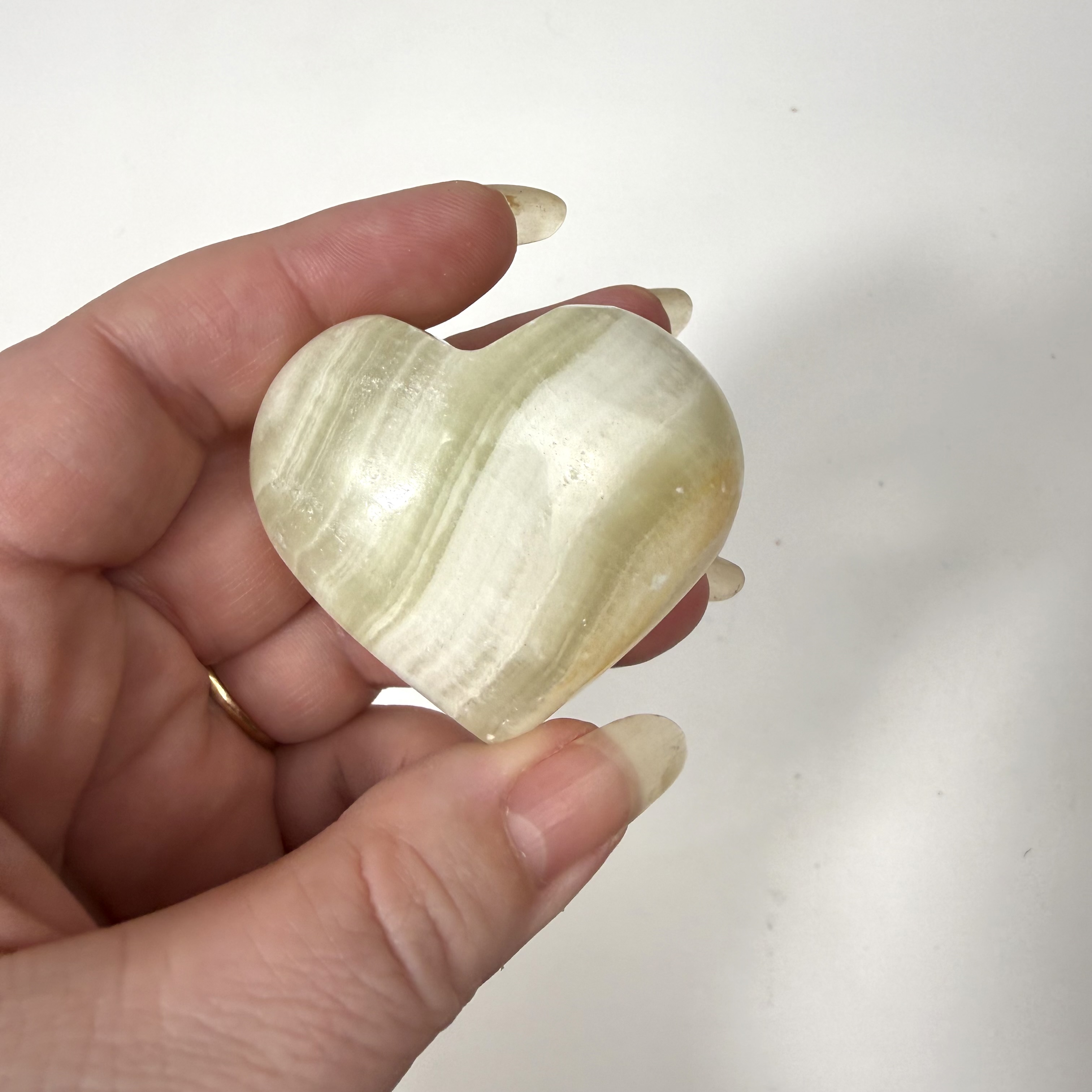 Grøn Onyx fremmer livsmod og giver styrke. Grøn Onyx er kendt for at styrke hukommelsen og hjælper dig med at huske miner og din fortid. Grøn Onyx har også en afslappende effekt, og er fantastisk mod stress og bekymringer. Grøn Onyx giver dig mentalt overskud og hjælper dig til at overkomme vanskeligheder. Grøn Onyx er stærkt forbundet med vores hjerte Chakra, og giver derfor også en indre ro i hjertet, og tiltrækker kærlighed og omsorg.