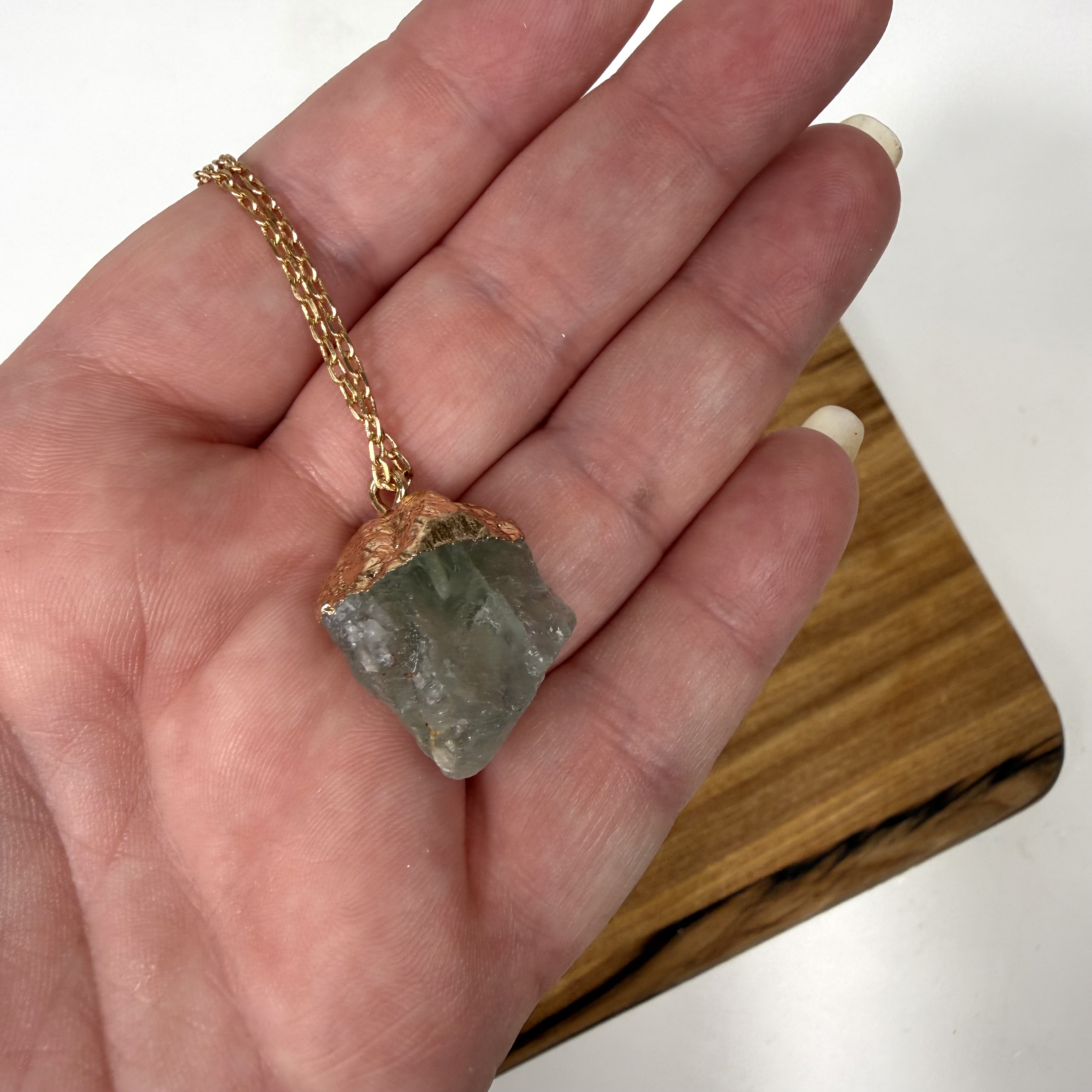Grøn Aventurin rå vedhæng m kæde