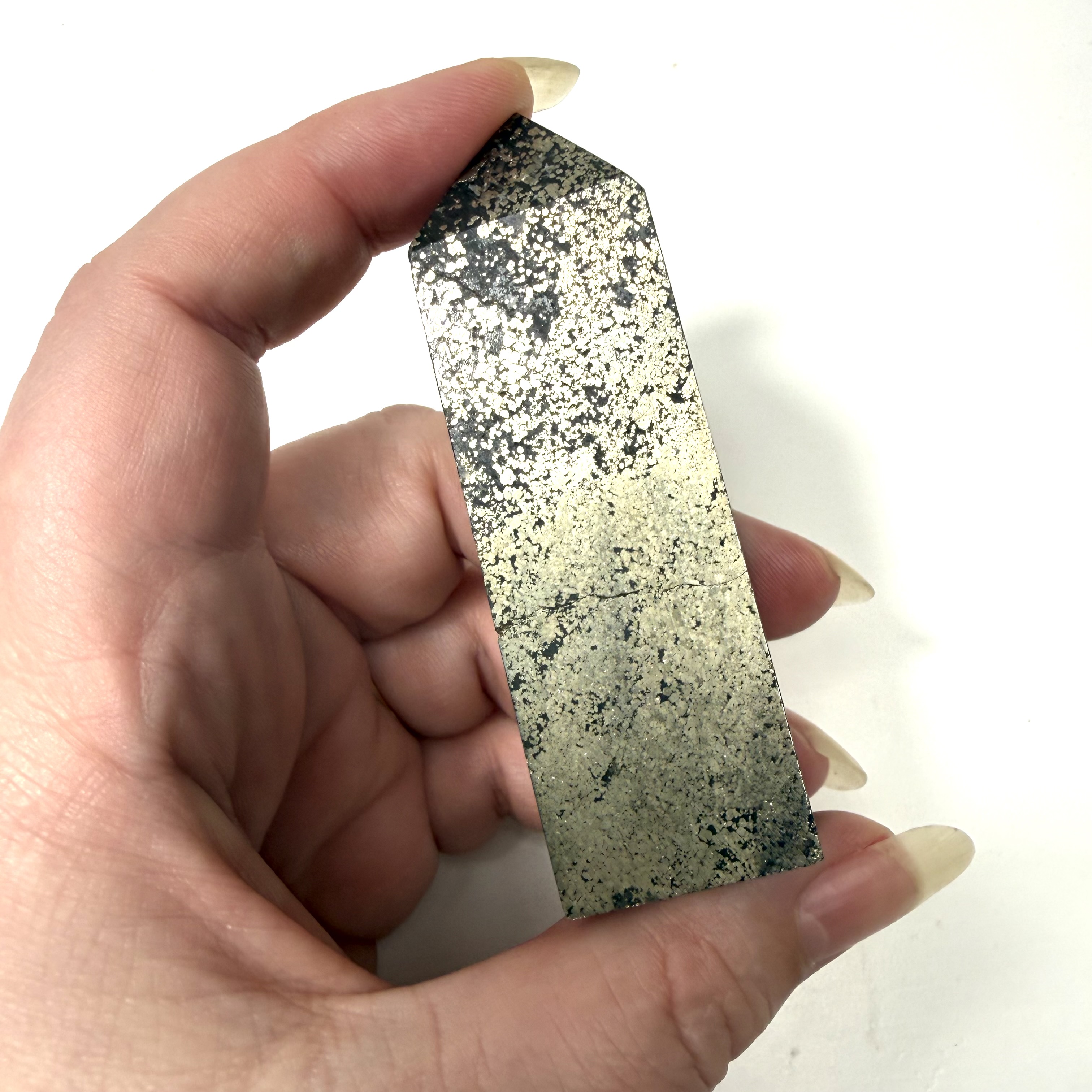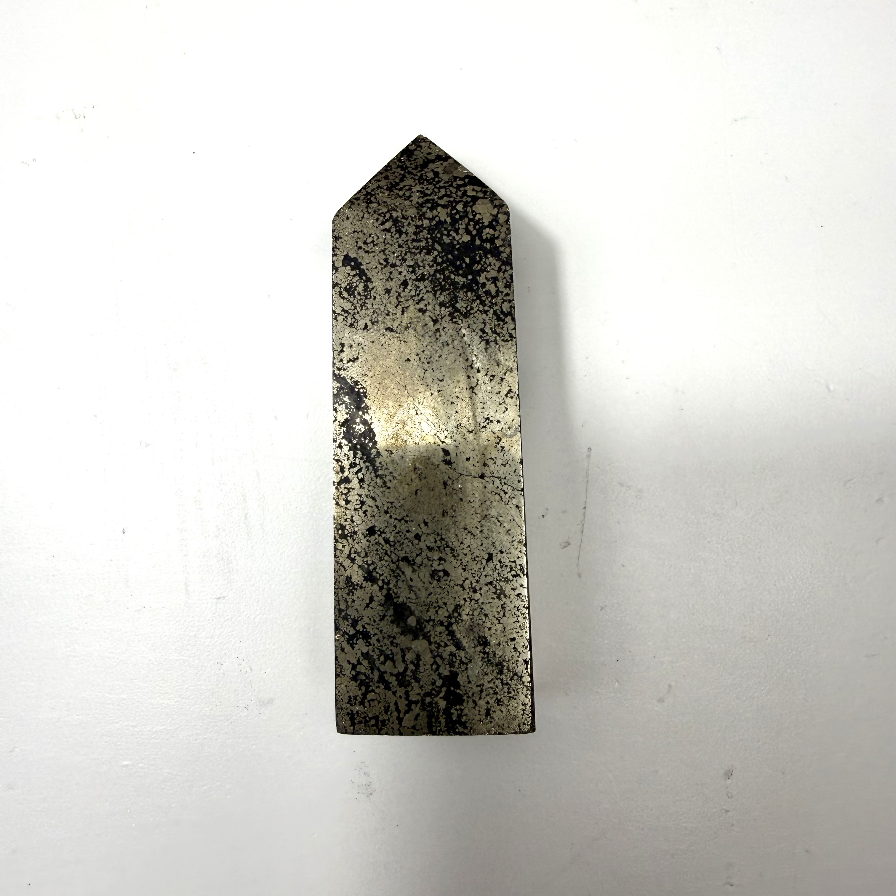 Pyrit har fået sit navn fra det græske ord for guld, stenen er også kendt som snyde guld. Pyrit er en fantastisk sten, hvis du står over for udfordringer der kan virke uoverskuelige, den giver dig selvtillid og styrke til at klare det på egen hånd. Pyrit giver jordforbindelse og bringer harmoni. Pyrit er også kendt for at bringe velstand og overflod.