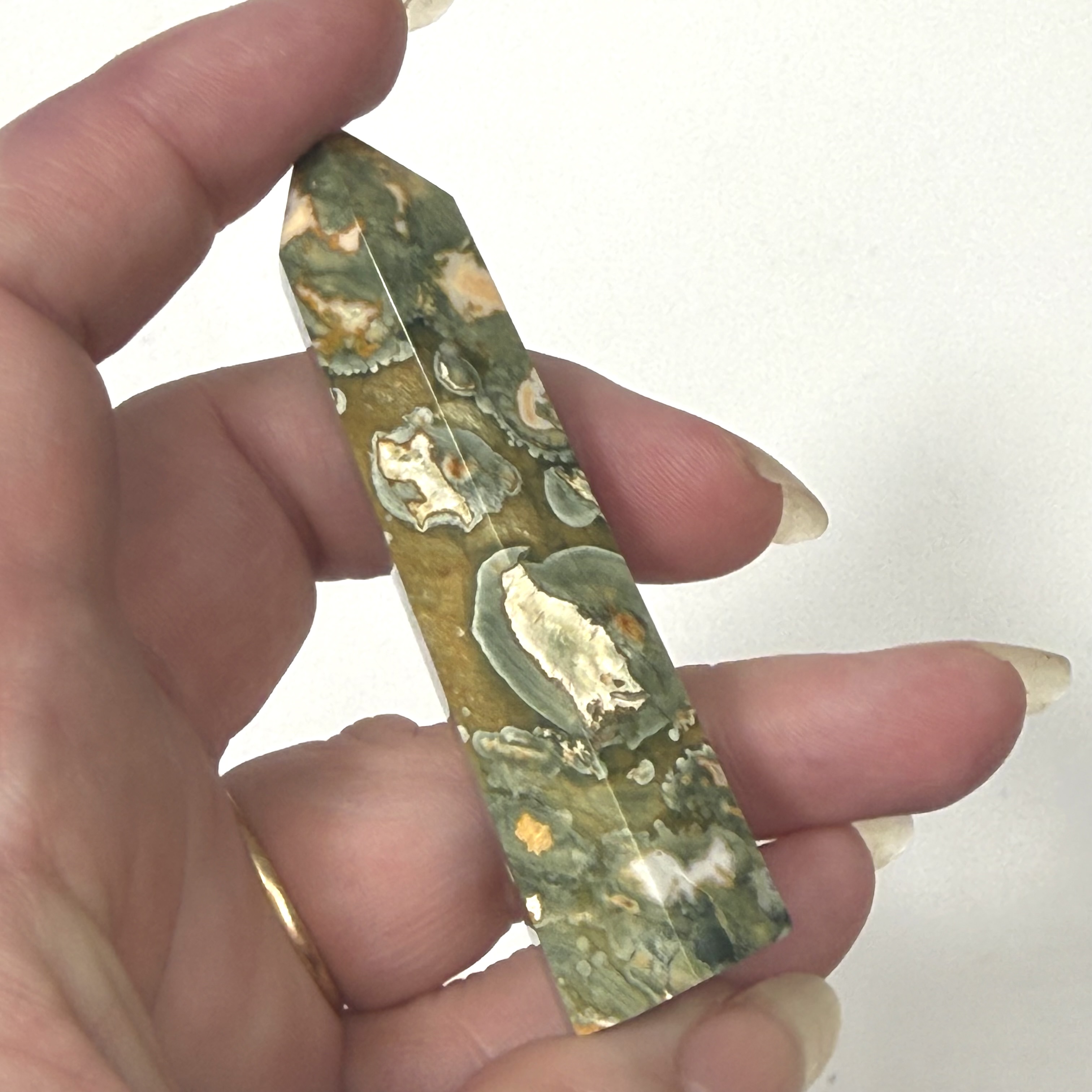 Regnskovs Jaspis er en helt unik sten, da den tilpasser sig bæreren af stenen, og er en ”mig” sten. Regnskovs Jaspis er en meget stærk sten, der giver styrke, selvværd og selvtillid. Regnskovs Jaspis giver balance i alle dine chakra. Regnskovs Jaspis hjælper dig med at finde din vej i livet, den hjælper dig over de bump der kan komme på vejen.