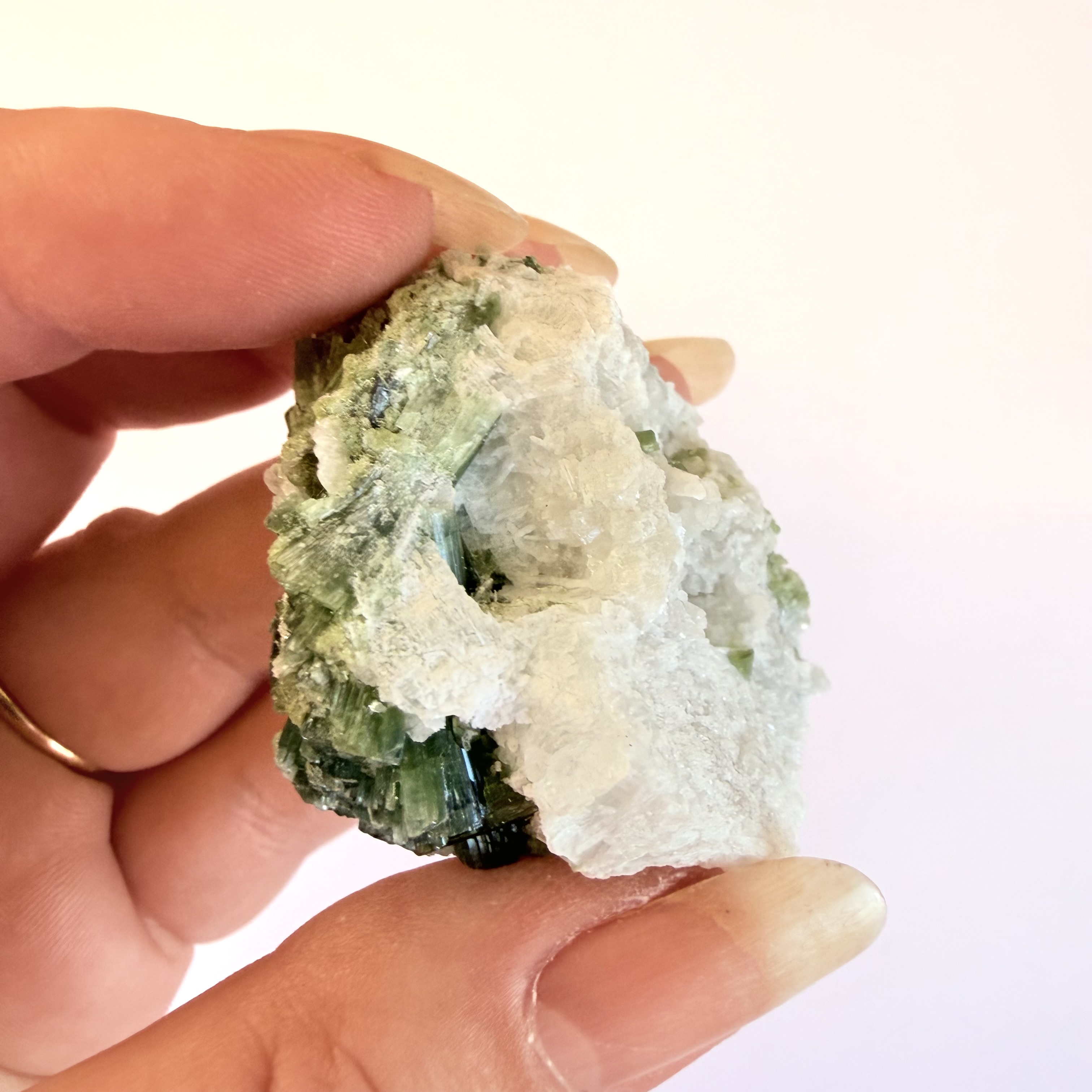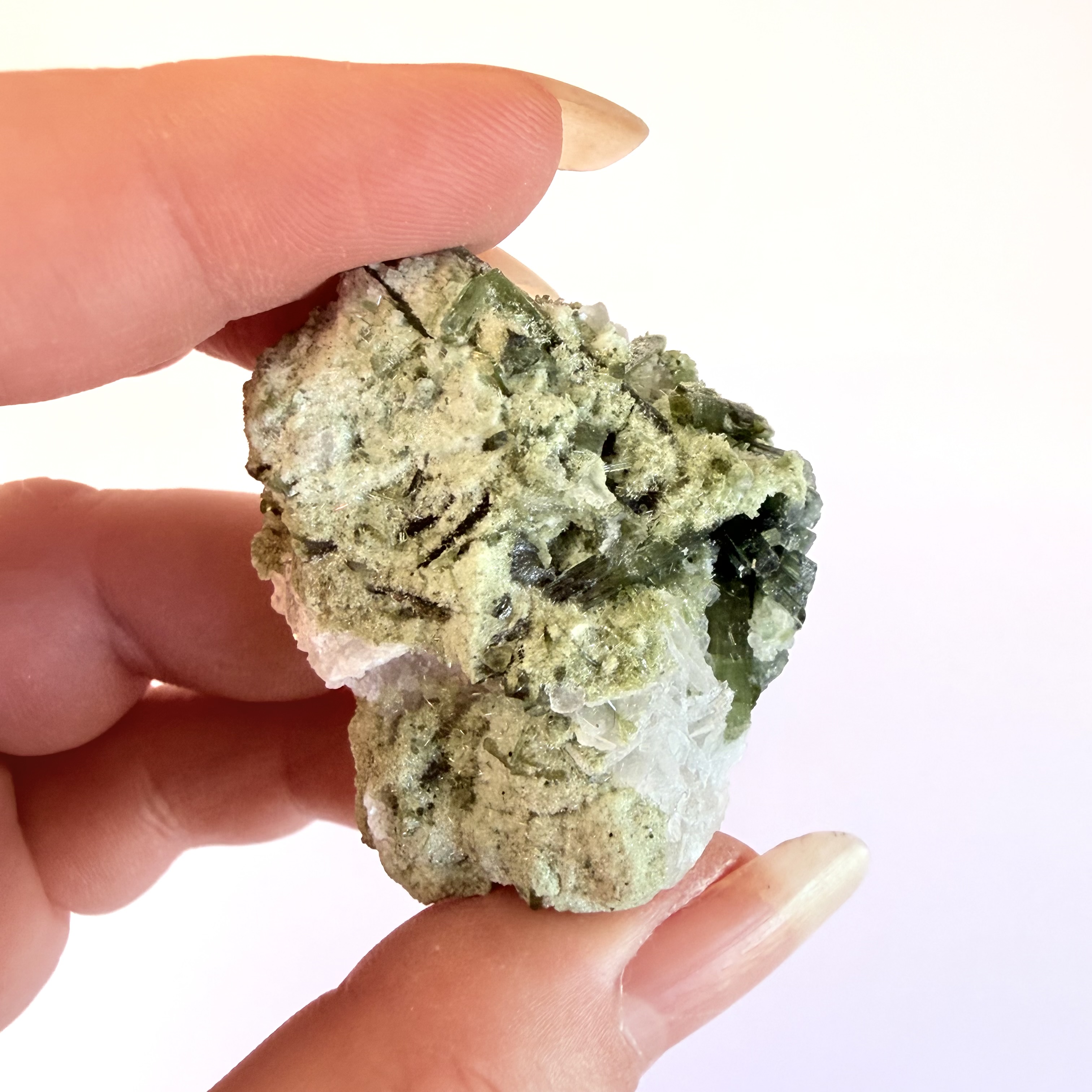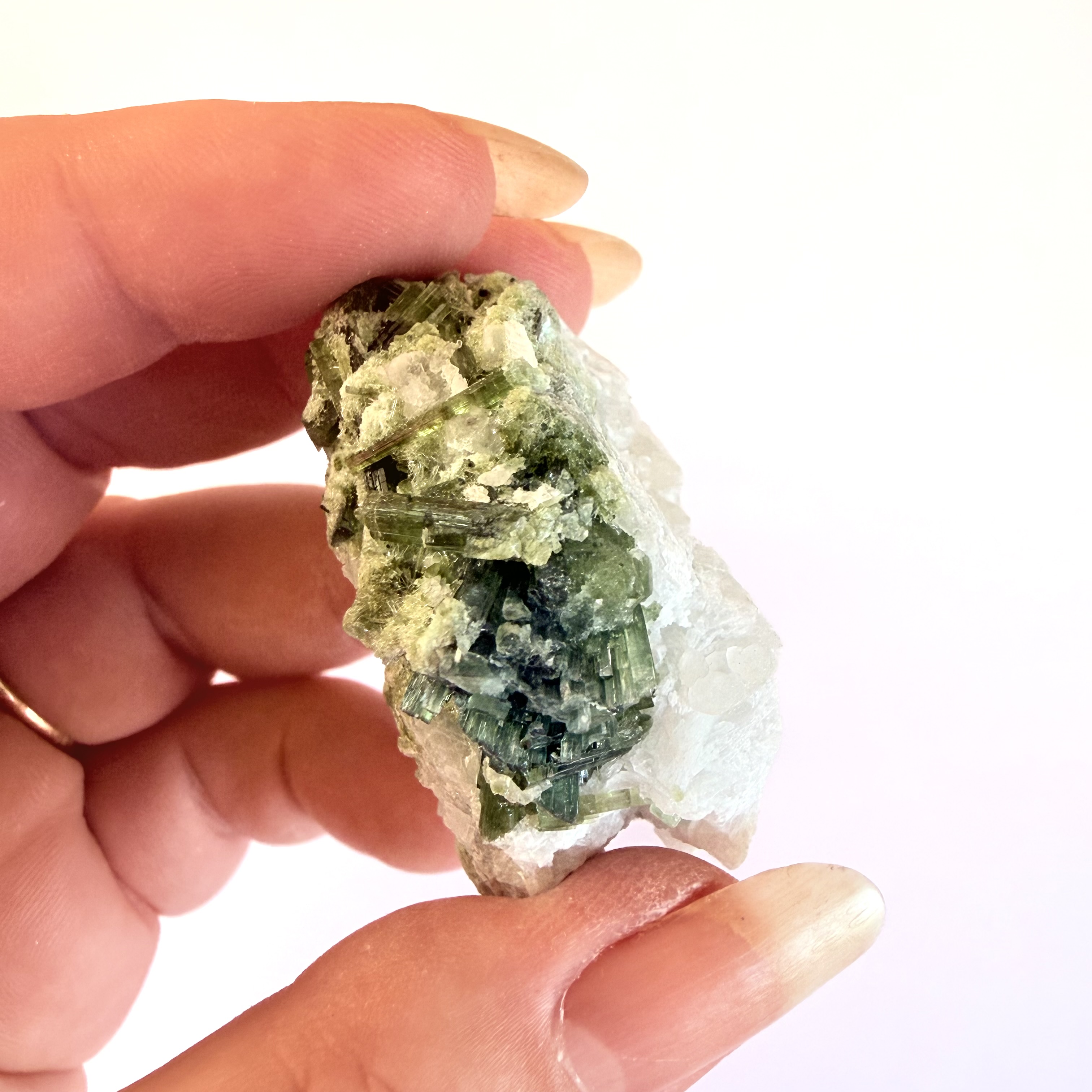 Grøn Turmalin i kvarts Klynge O