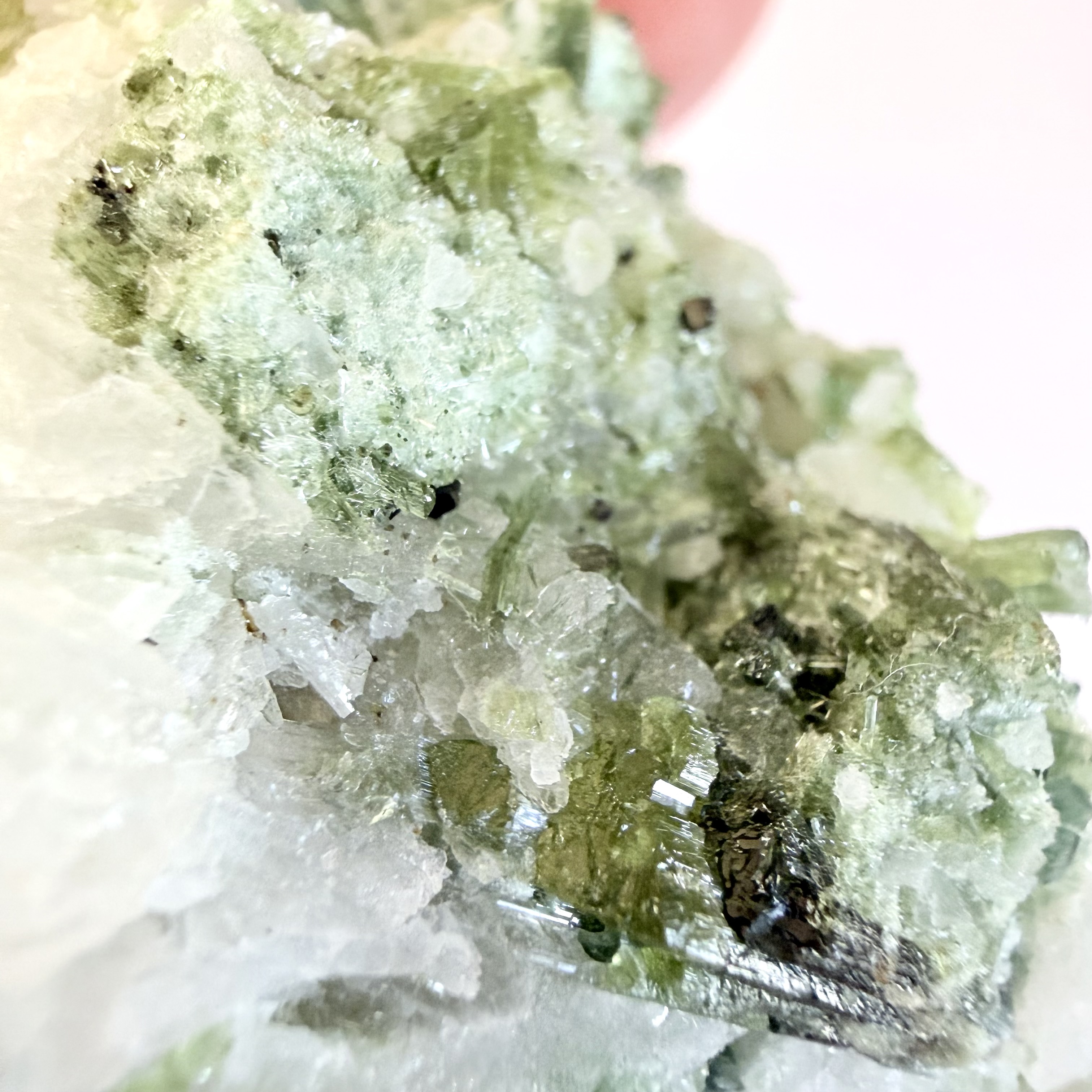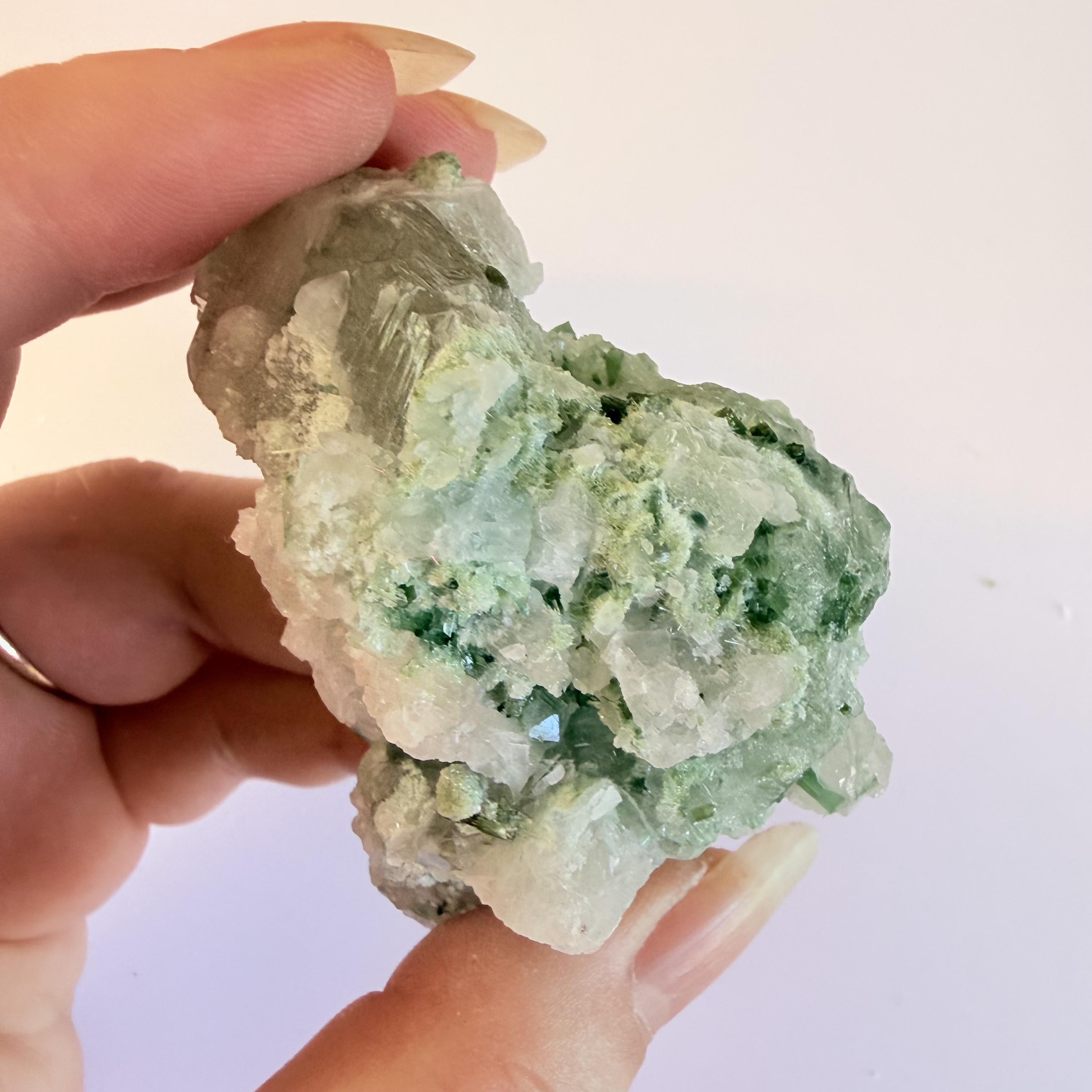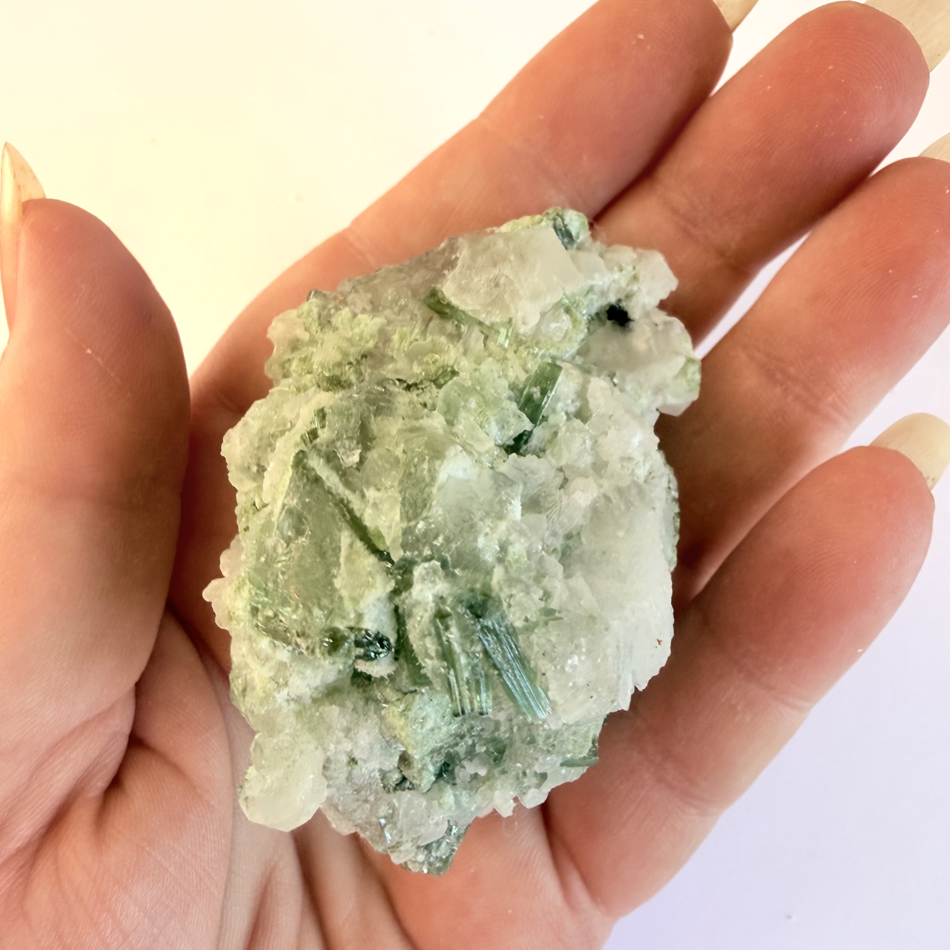Grøn Turmalin i kvarts klynge Q